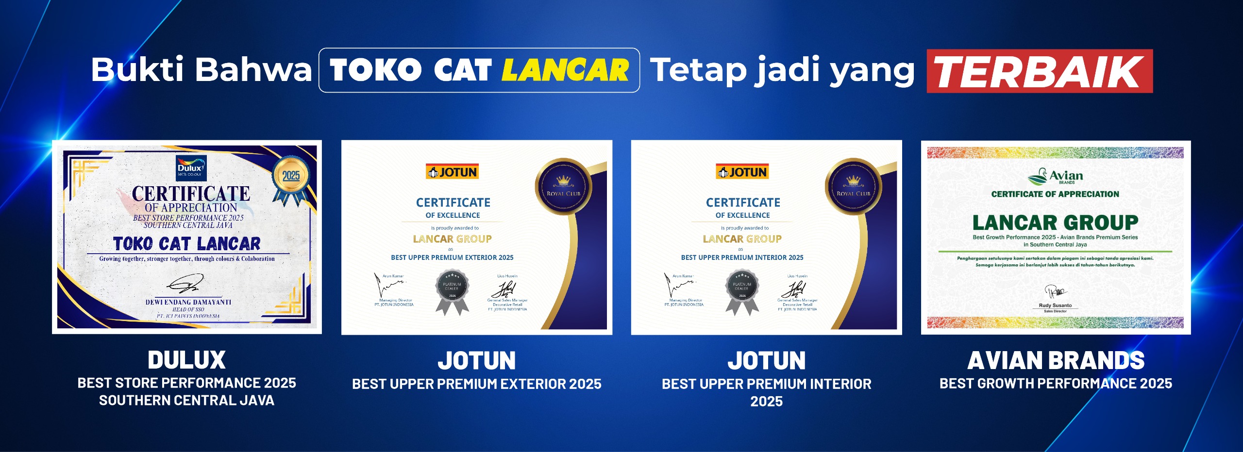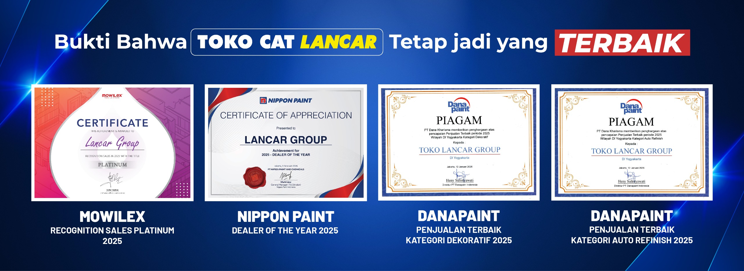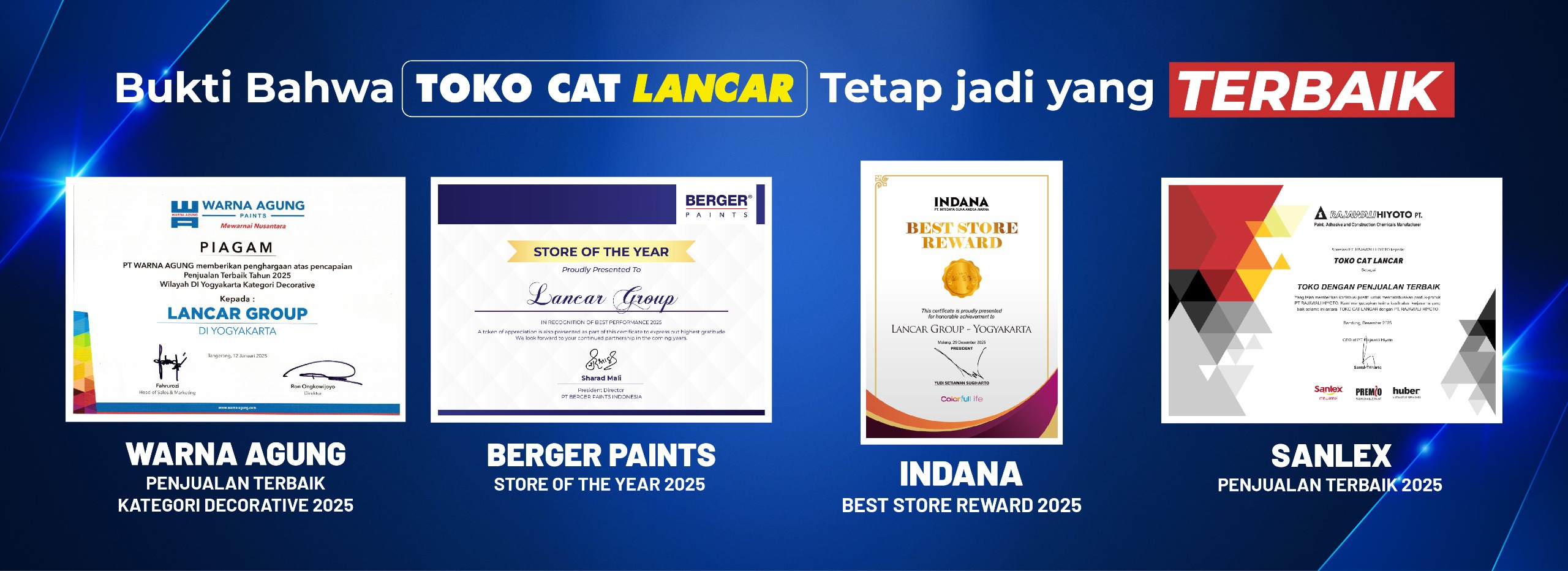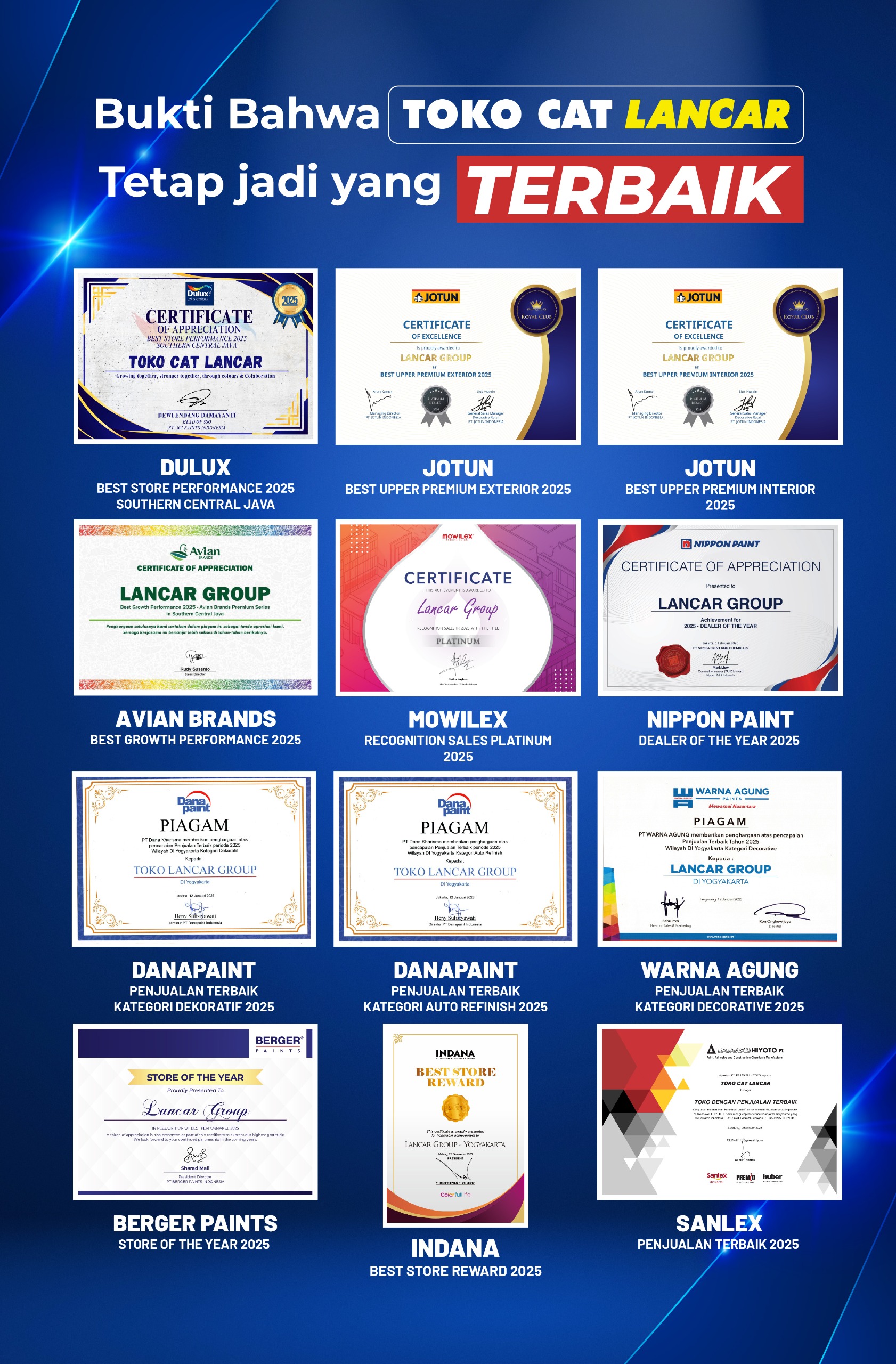 Toko Cat Lancar mulai beroperasi melayani masyarakat Yogyakarta pada tahun 1978. Didirikan oleh Lie Li Hong, awalnya berupa toko besi sederhana dengan 1 karyawan di Jl. P. Mangkubumi Yogyakarta. Lokasinya sangat strategis. Berada di kawasan pusat kota Yogyakarta. Sekitar 200 meter dari Perempatan Tugu (Landmark Yogyakarta) ke arah Malioboro.